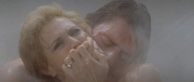 Vestito per uccidere inizia e termina con la scena di una doccia: il rimando a Psyco è chiaro fin dall’inizio, ma l’operazione che fa De Palma non è un remake, ma una riscrittura. La doccia, luogo di morte nel film di Hitchcock, diventa in questo caso spazio di fantasia erotica, si inquadra nel mostrare una donna inappagata, insoddisfatta della propria condizione, diventa luogo onirico impregnato di sofisticato erotismo e dissennata violenza.