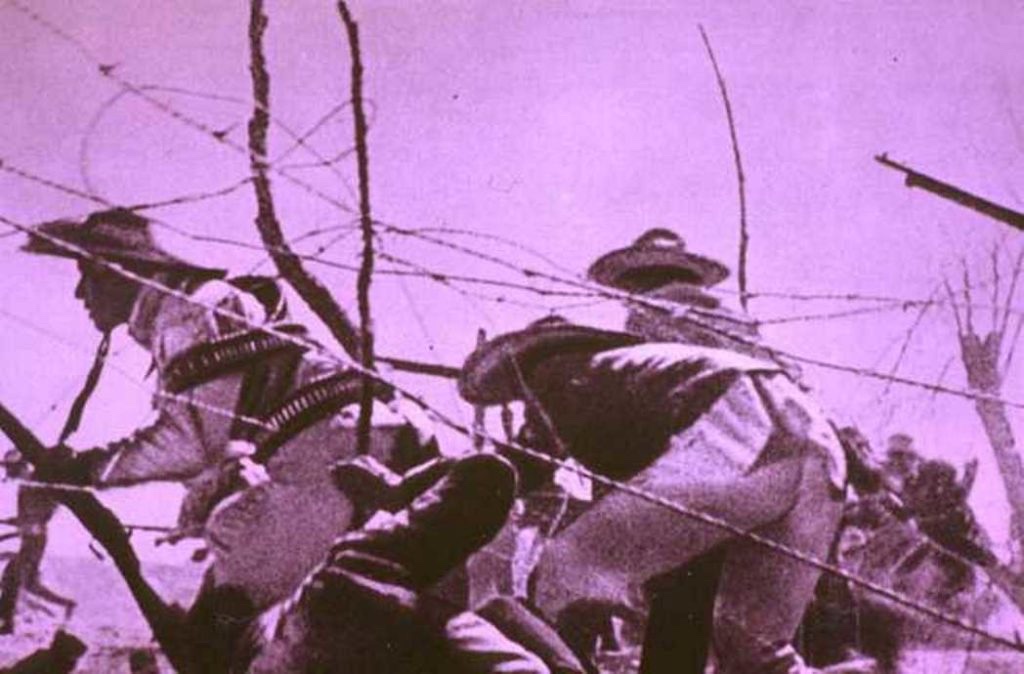 le immagini sono le più crude che si possano trovare nell’archivio storico: pile di cadaveri, violenze e macabri rituali, mentre il racconto si ferma sul progresso, la giustizia, i concetti dell’uomo nuovo e del potere al popolo, grandi pensieri di grandi pensatori che si sono scontrati con la macabra realtà: la realtà della guerra è cara all’uomo quanto gli è caro il sesso e l’amore.