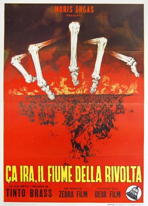 Ça ira è un antesignano del docufilm, nel 1964. Brass raccoglie immagini di repertorio che ripercorrono la storia delle rivoluzioni e delle battaglie del ‘900 , partendo dalla Rivoluzione russa, ripercorrendo la storia messicana, l’Irlanda, le guerre d’Africa, il nazismo, il fascismo, per evidenziare ciò che a tutti, più o meno, è cosa nota : La guerra nasce dalla miseria, la miseria nasce dalla guerra, in un circolo vizioso che è uguale in tutto il mondo, insito nell’essere umano e apparentemente inevitabile, come inevitabile che ogni leader del mondo promuova le armi pur parlando di pace.