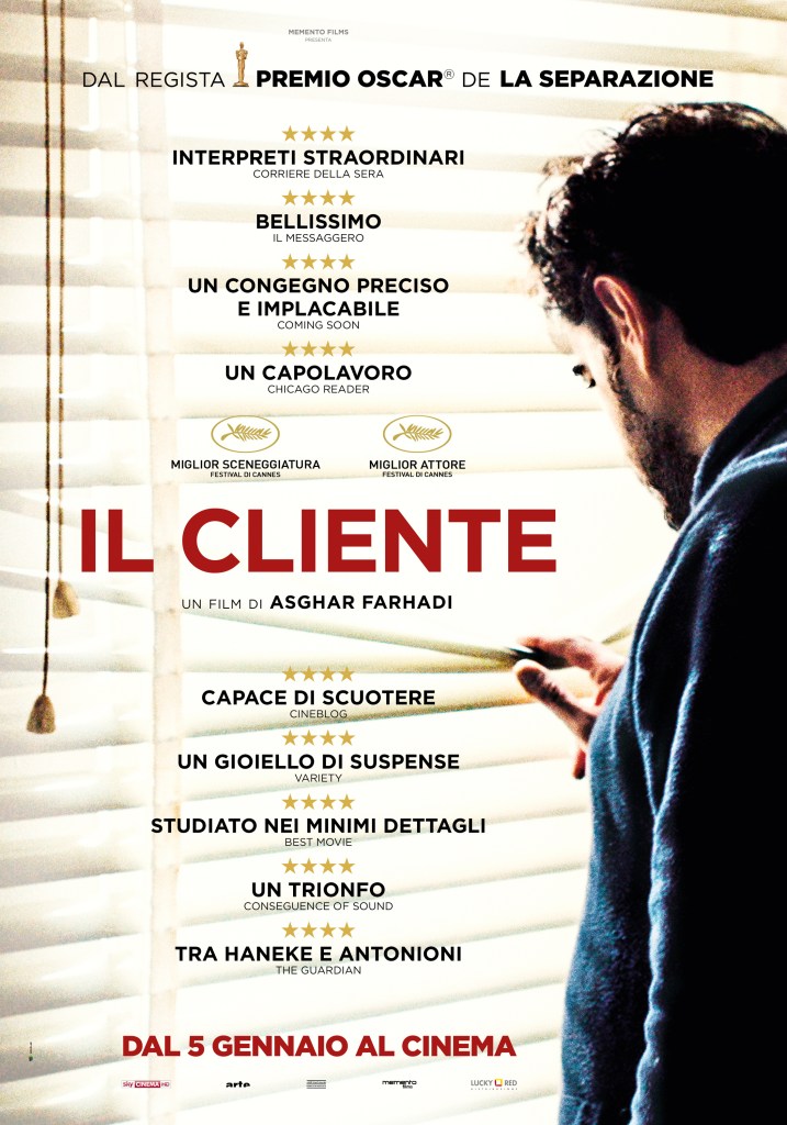 Precisione quasi scientifica, perché stavolta nell’operazione resta un’impurità, per fortuna. Una faziosità partigiana, empatica, che la meticolosa sceneggiatura non riesce ad annullare del tutto. Farhadi dirige da arbitro imparziale il gioco dei suoi attori (bravissimi) assumendo un ruolo di mero narratore, e quasi ce la fa a non schierarsi, a non sbilanciarsi mai verso una delle tante possibili morali pronte a scattare come tagliole, secondo la mutevole sensibilità di ogni spettatore. Ma alla fine cede al suo sentire, e rivela maggior rispetto per le contraddizioni della donna, anche se talvolta incomprensibili, fra le tante vivisezionate ne “Il cliente” – thriller paradossale in cui il protagonista dinamico è invece un uomo, e nemmeno quello cui allude il titolo: Farhadi ne condivide il travaglio di satellite inquieto, ma il centro focale intorno al quale tutto si muove, il corpo ferito e la dignità calpestata sono quelli di lei. E Farhadi difende lei, più di quanto la comprenda, e malgrado comprenda totalmente il comportamento di lui.