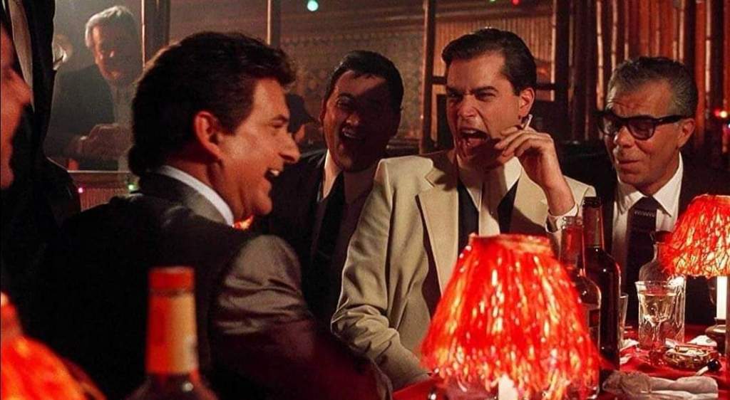 Magistrale è il piano sequenza di tre minuti che vede Henry e la moglie Karen (Lorraine Bracco) entrare nel prestigioso Copacabana e vederli attraversare le cucine del locale per raggiungere il loro tavolo in prima fila: Henry distribuisce sorrisi, battute e soprattutto laute mance. La banconota gli apre le porte. Così come significativo sia il fatto che Karen riceva al matrimonio più che fiori e abbracci buste di denaro e soprattutto, come confessa Henry ad un certo punto del film, “pagavamo gli sbirri, gli avvocati, i giudici. Stavano sempre con la mano tesa”. Un mondo di cartapesta che tenderà a frantumarsi quando tutto comincerà a trasformarsi, quando le anfetamine prenderanno il posto delle polpette e gli amici si riveleranno squali.