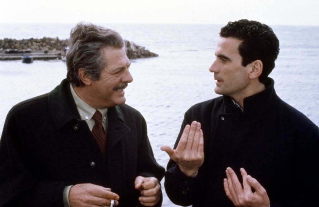 In questo film così desiderato (Troisi comprò i diritti del libro, produsse il film e chiamò a dirigerlo Michael Radford) sembra sciogliersi l’afasia di Troisi, nei versi del poeta dei sonetti d’amore che finalmente gli permettono di arrivare all’amore: “La poesia non è di chi la scrive, è di chi gli serve”. Girava due ore al giorno, con l’ambulanza fuori; l’ultimo giorno delle riprese, era un venerdì, decise di registrare tutto in anticipo, anche le voci off; e il giorno dopo, sabato 4 giugno 1994, morì, il giorno prima della partenza per l’atteso intervento di trapianto, senza aver mai ascoltato la colonna sonora con cui Luis Bakalov vinse poi l’Oscar.