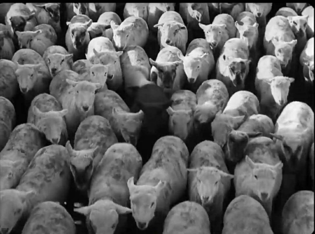 L’interesse di Chaplin è rivolto soprattutto alla dignità dell’uomo nelle condizioni moderne di lavoro. Il film si apre con una metafora che non lascia spazio a dubbie interpretazioni: come un branco di pecore che si affolla dentro un recinto, così gli operai si accalcano per entrare e uscire dalle fabbriche. L’umanità è ridotta già allora a massa indistinta, il gregge di operai sembra scivolare nell’anonimato, certo, non è la fabbrica di Metropolis di Lang che divorava i suoi lavoratori come un Moloch, l’antica divinità fenicia che esigeva sacrifici umani, ma resta comunque forte il principio, seppur alleggerito dall’effetto comico, degli uomini risucchiati dai meccanismi di un mondo disumanizzato, proiettato verso la produzione esasperante, verso uno sfrenato consumismo che annienta ogni valore umano.