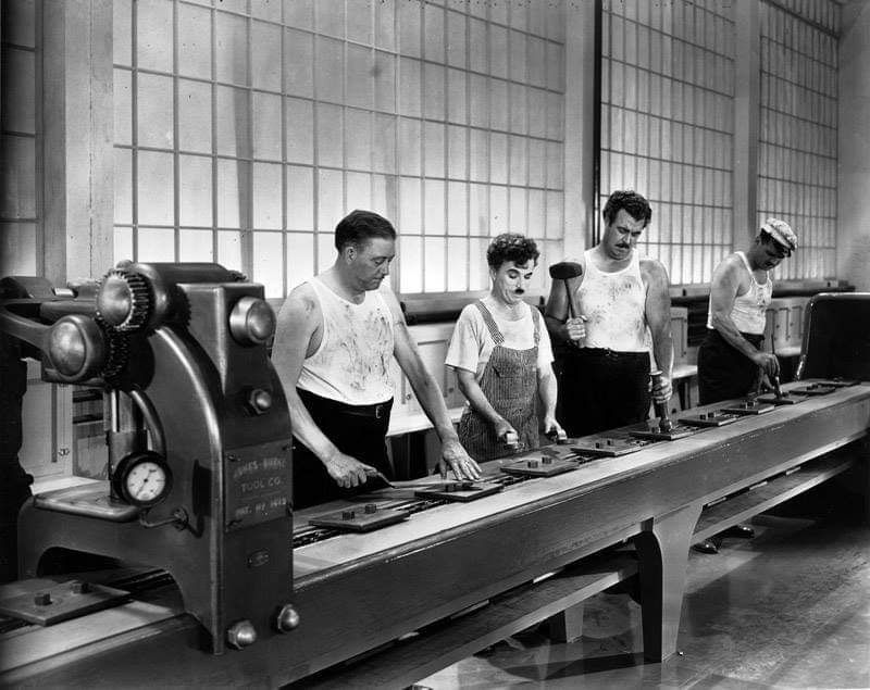 Tempi moderni è il primo film a portare sullo schermo, in chiave comica, le alienazioni della modernità e il rapporto controverso tra uomo e macchina.