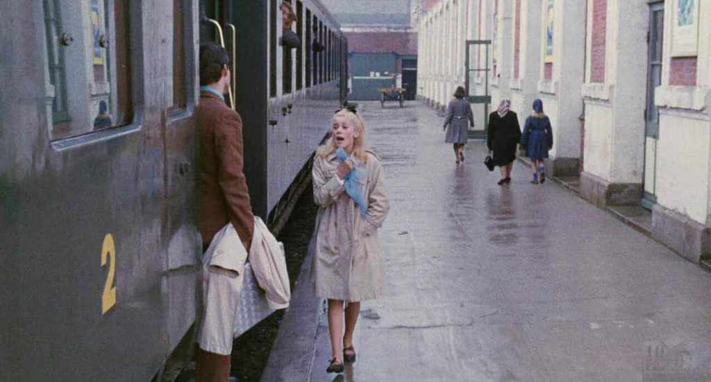 Suddiviso in tre parti, La partenza, L’assenza, Il ritorno, il film, visivamente affascinante, è un incessante vortice di sensazioni, ultimi amori, istantanee fugaci di notti rubate al destino: Demy è abile nel riuscire a catturare un tempo sospeso, la casualità delle esistenze, le gocce di pioggia battente su una selva di ombrelli aperti. È straordinario nel descrivere l’infelicità del matrimonio tra Geneviève e Roland attraverso piccoli dettagli come nella scena dello scambio degli anelli, in cui fa tutto il marito, mostrando la passività forzata della donna. Così come è delicato quanto basta per descrivere l’amplesso non mostrato tra la ragazza e Guy: attraverso il montaggio il regista mostra vicoli vuoti, stanze solitarie che non sono altro che il preludio dell’imminente assenza che verrà.