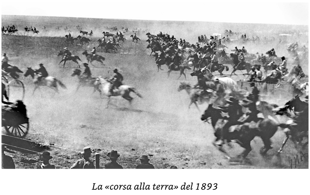 Negli anni ’90 dell’800 la situazione peggiorò drasticamente per la politica del Governo di Distribuzione della Terra. Il territorio indiano fu frazionato in lotti da 160 acri, e ad ogni osage venne concesso un lotto: il resto venne assegnato ai coloni tramite la “Corsa alla Terra”.