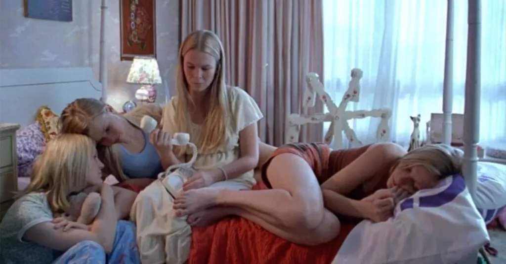 Il secondo suicidio purtroppo va a buon fine, ma nella famiglia Lisbon non c’è spazio per elaborare un lutto significativo: tutto viene accantonato e presto la vita prosegue. Le sorelle riprendono ad andare a scuola, si affacciano alla vita consapevoli di essere oggetto di desideri, le vediamo mentre si dipingono le unghie dei piedi, si annoiano, sfogliano riviste di moda e cataloghi di viaggi, lanciano occhiate ai ragazzi, sono corpi in procinto di sbocciare, ma dentro rivelano una sensibilità gracile, introversa, un cuore invocante che si fa piatto, non reattivo.