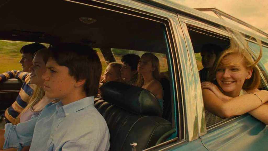 Lo sguardo della regista, sin dalle prime inquadrature, gioca sul contrasto tra ciò che apparentemente può sembrare tranquillo, immutato e ciò che all’improvviso diventa disturbante, intrusivo, difficile da percepire. La scena di apertura del film, ad esempio, mostra i rassicuranti paesaggi del quartiere periferico di Detroit, ordinato e gradevole allo sguardo: i piccoli giardini all’ingresso delle case, l’erba ben tagliata, gli olmi che nascondono un poco la vista delle finestre dalle strade. Ai margini di questa rassicurante tranquillità, tuttavia, una nota discordante, all’inizio percepibile, poi sempre più insistente, si inserisce all’improvviso, diventa ingombrante: la sirena di un’ambulanza rompe il quieto vivere e una voce narrante si introduce a spiegarci che Cecilia, tredici anni, la più piccola delle cinque sorelle, ha appena tentato il suicidio.