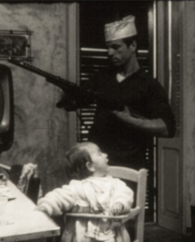 Baldi non offre spiegazioni, segue i gesti di un uomo che improvvisamente è folgorato dal senso dell’assurdità della sua esistenza; non dice quando Mario ha perso il lavoro, né sappiamo niente del suo disagio che si esprime in una forma di lucida follia che trova il suo linguaggio non nelle parole, nei discorsi ma nelle armi, che sono ovunque, segno di potere illusorio, che non fanno altro che misurare tutto il peso dell’impotenza dell’uomo.