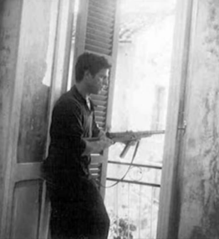 Presentato alla Mostra di Venezia nel 1968, Fuoco si incentra su un personaggio solo, chiuso in un mutismo impenetrabile e assoluto. Non parla, ogni tanto è colto da violenti spasimi di dolore, si muove come un animale in gabbia nel chiuso della sua casa, dai muri scrostati e dal pavimento dissestato, e nel suo silenzio ostinato e lugubre passa le sue ore caricando le sue armi, scrutando dalla finestra i movimenti della polizia e ogni tanto scarica sulla piazza qualche colpo. Spara in aria per diffondere il panico, non vuole fare stragi ed è per questo che è un film crudo e impressionante, non tanto per la violenza, che è comunque presente, ma per l’impenetrabilità nelle motivazioni.