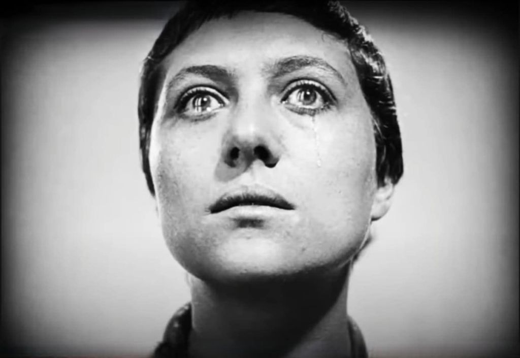 Cosparsa di lacrime, lambita dalle fiamme, rapata a zero, Giovanna ha di fronte a sé l’ostilità della repressione, del potere politico e contro di essi lotta per l’affermazione di una verità altra, individuale, scegliendo la morte all’abiura del suo credo. Il film non solo misura la forza della femminilizzazione della Passione di Cristo ma costituisce anche una critica massiccia al sistema clericale, concentrata nella frase di un prelato che indica nell’offesa all’istituzione la giustificazione alla condanna a morte della ragazza. “Dal momento che siete certa della vostra Salvezza, allora non avete bisogno della Chiesa?”.
